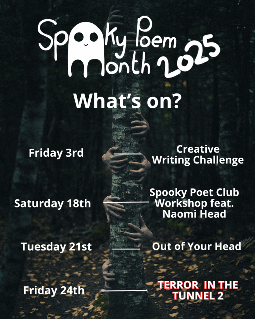 Saturday 18th (7pm) – Spooky Poet Club Workshop feat. Naomi Head